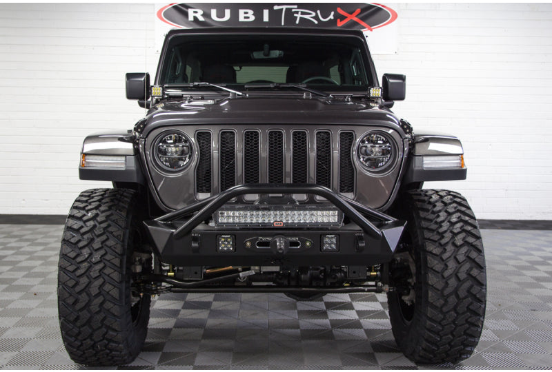 Poison Spyder front bumper skid plate not shown in photos, but is installed on this Jeep.
