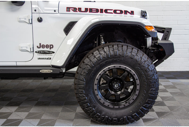 With Rubicon standard skid plates, powered steps that double as rock rails, an aggressively styled Westin front bumper, Rigid LED Lights and Dana 44 axles with lockable differentials, you will dominate the trail, and can wheel to any destination on or offroad!