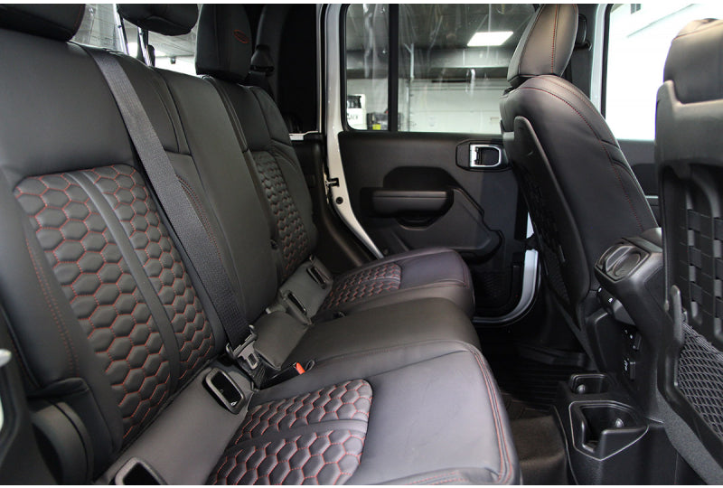 Ride in comfort with the custom #eather interior from Alea Leather, Jeep’s Cold Weather Package, and both a hard and soft top! See where you are, and where you can go with the premium uConnect 8.4” navigation system and rear camera systems!