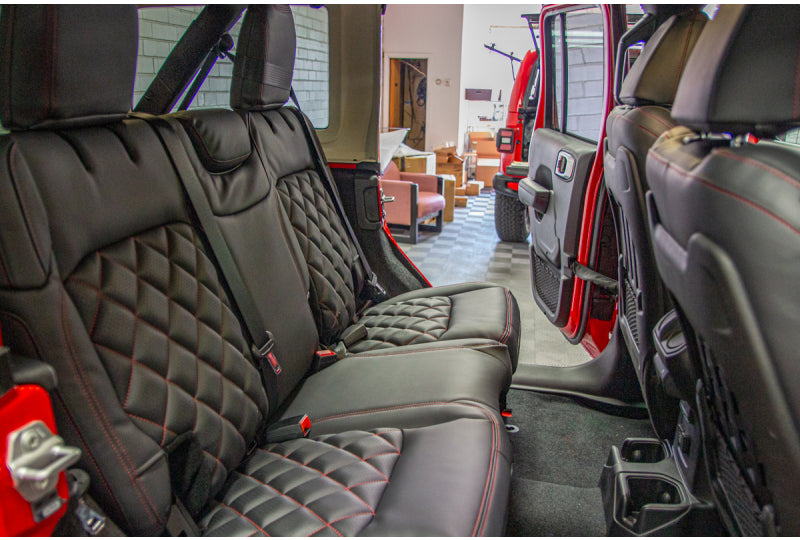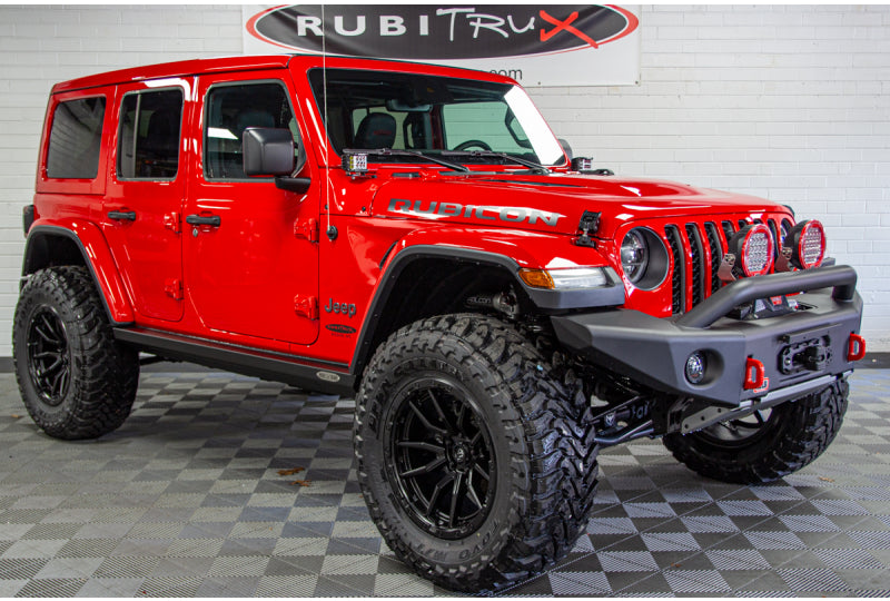 This Firecracker Red 2021 Jeep Wrangler Unlimited Rubicon JL is ready to roll into your driveway today! Give Jesse a call at 828-773-5728 for more information on this build, or for inquiries about a build of your own!