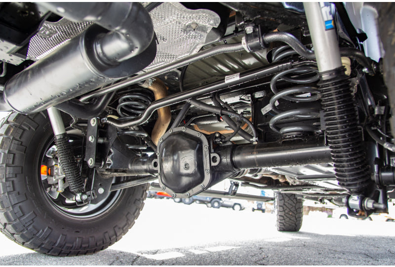 AEV designed this suspension system to provide a +2.5” front and rear curb height gain. However, we do maintain the factory rake to compensate for heavier loads and to maintain a more level stance when the vehicle is loaded up with passengers and gear.