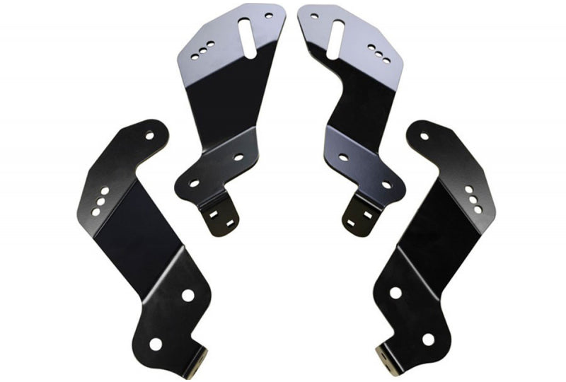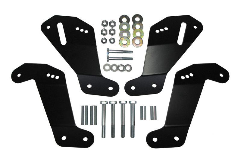 AEV's Front Control Arm Drop Brackets pack a lot of suspension performance improvements into a small and affordable package. These drop brackets will improve front impact ride quality (expansion joints, ledges), increase anti-dive for improved braking performance, decrease the operating angle range of the front driveshaft, and eliminate the need for adjustable control arms or cam bolts for caster correction. AEV Front Control Arm Drop Brackets are included in all AEV 3.5"/4.5" DualSport suspensions, but can also be added to AEV's 2.5" DualSport suspension as well as other manufacturer's suspensions. See Tech Specs for more details. Key Benefits: - Improve front impact ride quality (expansion joints, ledges) - By reducing the operating angle of the front control arms, the suspension is allowed to work in a more natural state. This means that when hitting a bump, the force applied to the control arms is directed up into the springs instead of back directly into the frame. In effect an AEV 3.5" lifted JK "thinks" its lifted only 1.25". - Change the instant center to increase Anti-Dive for improved braking performance - By increasing the anti-dive geometry of the suspension, you'll notice the front of the vehicle will barely drop under hard braking when the control arm brackets are used. By increasing force on the front wheels, traction is increased for better straight line braking and by reducing the shifting weight and inertia under braking in curves, handling is greatly improved. - Decrease the operating angle range of the front driveshaft - This one is often overlooked. Aftermarket double cardan joints do not have the torque rating (1850lb/ft for t a 1310 double cardan, 2150 lb/ft for the OE CV Joint) and they can't run as smoothly so its advantageous for most JK use to keep the stock CV units. The Front Control Arm Brackets rotate the pinion up as the axle drops to eliminate torn boots on the CV for long life with a lifted application. - Eliminate the need for adjustable control arms or cam bolts for caster correction - We've been touting the benefits of using the stock control arms for a long time because of the pre-loaded rubber OE Bushings that the factory uses, and because that quality has yet to be rivaled in any aftermarket bushing. These new brackets allow for the proper caster ranges to be achieved. Please note: Adjustable Control Arms are not a replacement for drop brackets - Its often misunderstood that higher priced adjustable control arms have the same effect as AEV's control arm brackets and that the brackets are just a cheaper option than providing adjustable control arms. Nothing could be farther from the truth, both components do separate and different things and both have their place under a Jeep. Both products can adjust the castor angle which is where much of the confusion stems from. AEV's drop brackets change four distinct parameters: - Lowers arm angle for ride quality. - Lowers the instant center for better braking (antidive). - Decreases operating angle of the driveshaft by reducing the range of travel. - Corrects caster angles. Adjustable control arms can certainly allow the proper caster angle to be dialed in, however they are incapable of all the other parameter changes, and in fact make the instant center, ride quality and driveshaft angles all worse than stock. Adjustable control arms can do some things that the drop brackets can not: - Move the axle position forward or aft which may be required with aftermarket HD axles. - Change the pinion angles for aftermarket Cardan or Double Cardan driveshafts. - Correct minor deviations in suspension geometry after an accident with mild frame damage.