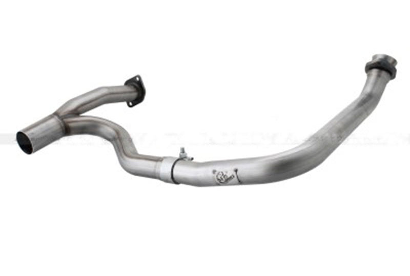 The aFe Mach Force XP Jeep Y-Pipe is designed to connect your Jeep's factory converter with either the exhaust from the factory or aFe's Mach Force XP exhaust system. It accommodates aftermarket lift kits and features 2" x 2" into 1" x 2.5" stainless steel mandrel-bent tubing with OE flanges and hand-MIG welded construction, which is corrosion-resistant. Its smooth curves and increased diameter help to reduce restriction and keep exhaust gasses flowing smoothly for improved performance and durability. All necessary hardware is included for easy installation; no modifications to your vehicle are required. The new 3.6L Pentastar power plant on the 2012-2013 JKs changed the positioning of the stock Y-Pipe. When a lift kit is installed the clearance between the exhaust and the driveshaft is dramatically reduced and the risk of contact damage is greatly increased, especially when traveling in rough off-road terrain. The aFe Mach Force XP Y-Pipe re-routes the exhaust to provide the necessary clearance to clear the drive shaft. It is recommended for 2012 and newer Jeep Wrangler JKs with 3.5" lift or higher, especially those used in extreme off-road conditions. It is required for installation of 4" or higher aftermarket lift kits on 2012 and newer Jeep Wrangler JK and JK Unlimiteds. The aFe Y-Pipe maintains the factory "Loop" to keep engine back-pressure equal.