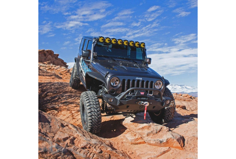 To achieve the longest distance off-road lighting setup on a Jeep Wrangler JK, the Pro6 LED Light Bar uses patented Gravity® Reflective Diode (GRD) technology to throw light out at an incredible distance. With an intense and focused beam of light shooting out in front of you, you don't have to worry about outrunning the light with your powerful and capable Jeep. The mounting brackets are formed from heavy-gauge steel and powder-coated textured black for ultimate durability. KC ensures that mounting is easy with a 100% bolt-on design right into the factory locations while accounting for the changes to the base Wrangler/Gladiator designs that Jeep made to increase the performance of these vehicles. This kit includes lights, mounting brackets, a complete wiring kit, and more.