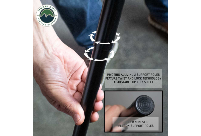 Featuring three pivoting aluminum poles with a quick lock system, this awning allows for rapid adjustment to various heights and angles, offering flexibility in setup to match the changing weather conditions. The design ensures you can easily secure your shelter against wind and rain, providing peace of mind during unpredictable outdoor adventures.