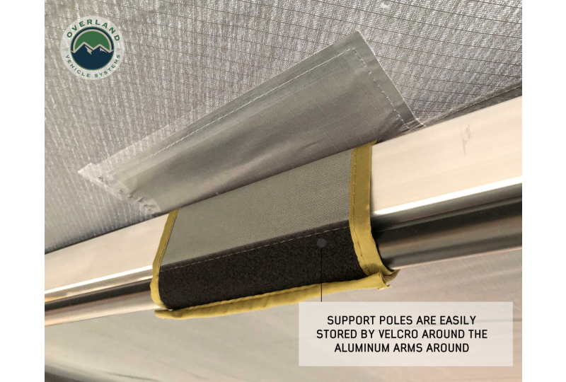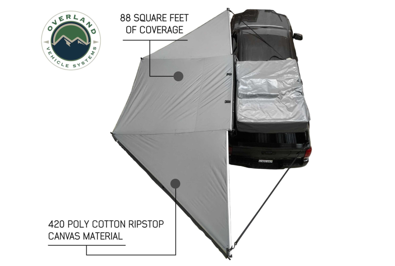 The Nomadic 180 Degree Awning with Zip In Wall is designed for adventurers who value speed and efficiency in setting up their shelter. Its innovative design allows for a one-person setup without the need for additional support poles, thanks to its reinforced oversize hinges and heavy-duty rafters, providing an impressive 88 square feet of shelter.