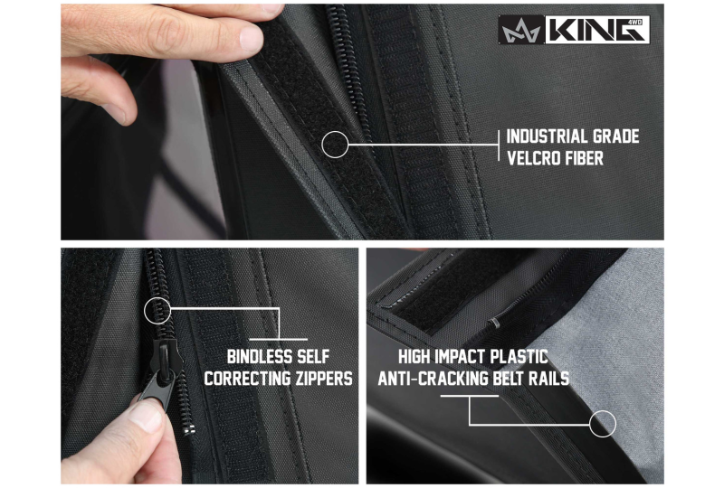 The soft top features marine-grade stitching with heat-sealed seams, bindless self-correcting nylon reinforced zippers, and industrial-grade Velcro fiber. High-impact plastic anti-cracking belt rails further contribute to its robust construction, ensuring durability and a perfect fit.