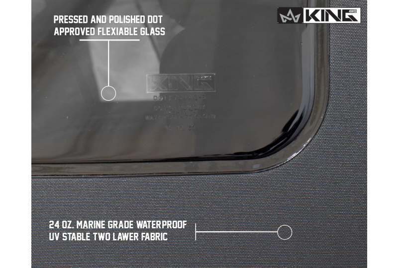 Featuring pressed and polished DOT-approved flexible glass, the soft top's windows provide clear visibility while their 31% tint offers privacy and UV protection. This high-quality glass remains undistorted and resists yellowing and shrinking over time, maintaining clarity and durability.