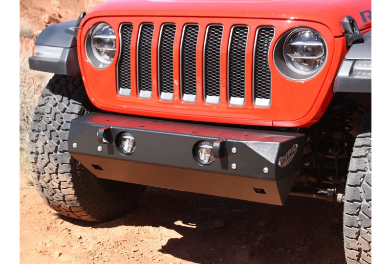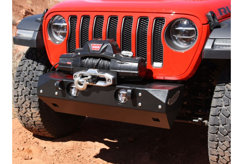 The new Rock Hard Wrangler JL & JT Patriot Series Bumper is all you need to beef up the front end of your JL or JT. Comes 100% bolt on install and with a nice black powder coated finish. These bumpers will accept the factory fog lights, and aftermarket light mounting tabs are included. This bumper uniquely positions your winch on TOP of your frame rails, not lowered. The Winch fairlead mounting plate is included. This makes all winches compatible with our bumper with zero trimming required.