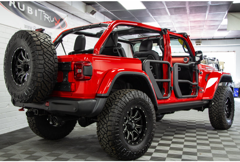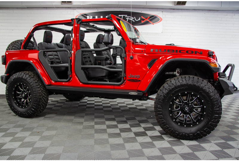 Rugged Ridge's new Wrangler JL & Gladiator JT Tube Doors come black powder coated and have a sleek continuous-tube style around the doors exterior. Constructed from OD steel tubing, you can rest assured these doors are tough and ready for the off road. They come fully welded for a rattle free performance on or off road. Each door comes assembled with a secure rotary latching mechanism and a contoured latch plate. You will have to bolt on the door hinge pins.