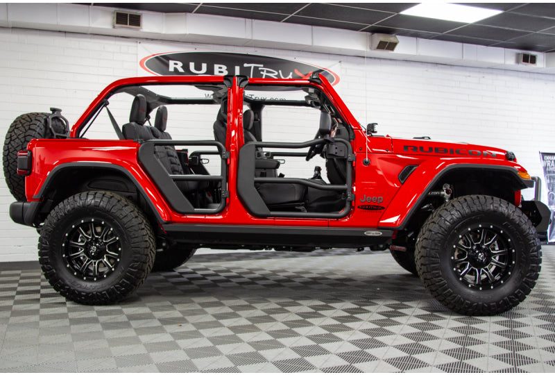 Rugged Ridge's new Wrangler JL Rear Tube Doors come black powder coated and have a sleek continuous-tube style around the doors exterior. Constructed from OD steel tubing, you can rest assured these doors are tough and ready for the off road. They come fully welded for a rattle free performance on or off road. Each door comes fully assembled as well with a secure rotary latching mechanism and a contoured latch plate.