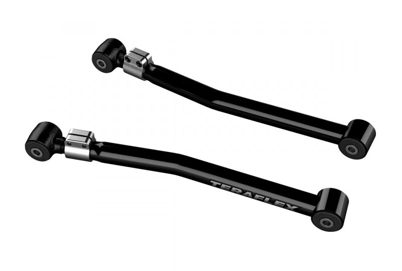 The TeraFlex Alpine Flexarms blend the maintenance free dependability of their sport flexarms with the complete adjustability of their monster flexarms. The Alpine arms feature high quality, factory style bushings to provide excellent vibration damping rubber bushings at both ends for premium daily driving and ride quality characteristics. The arms offer full range of movement and excellent articulation and flex off-road.