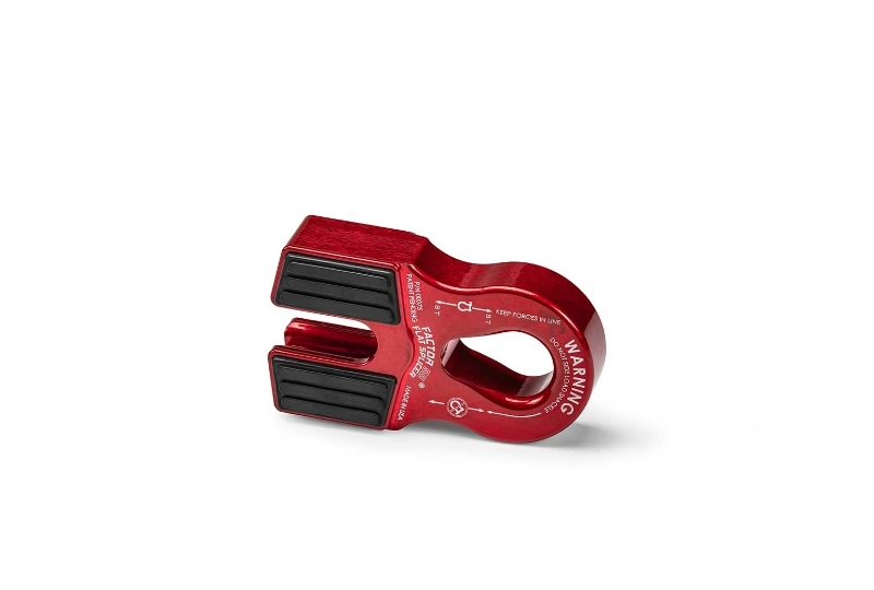Winch Line Shackle Mount Splice On Foldable Red from Factor 55. Replace conventional winch hooks with a safer more secure shackle/D-ring. The world's first foldable splice-on winch rope shackle mount.